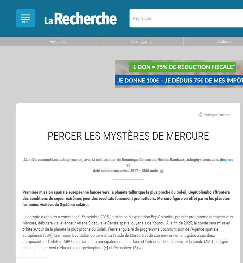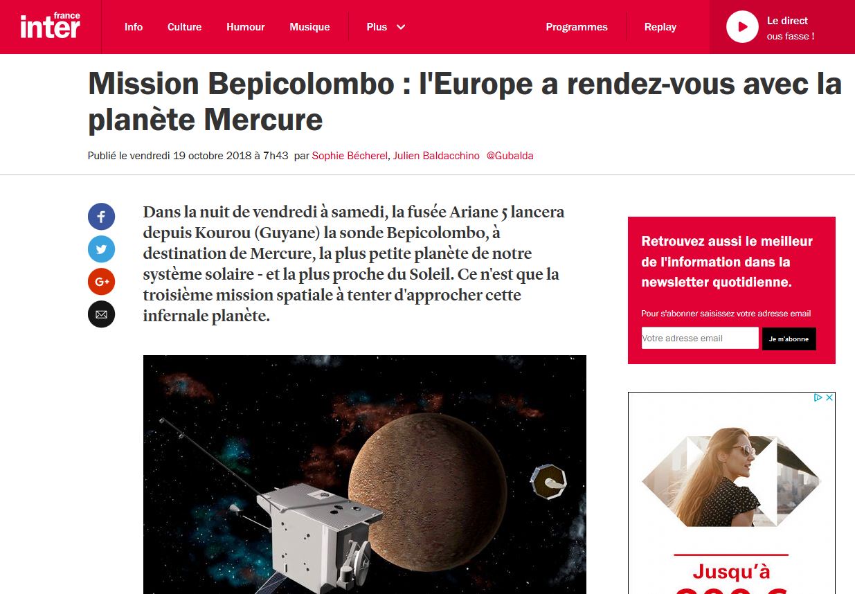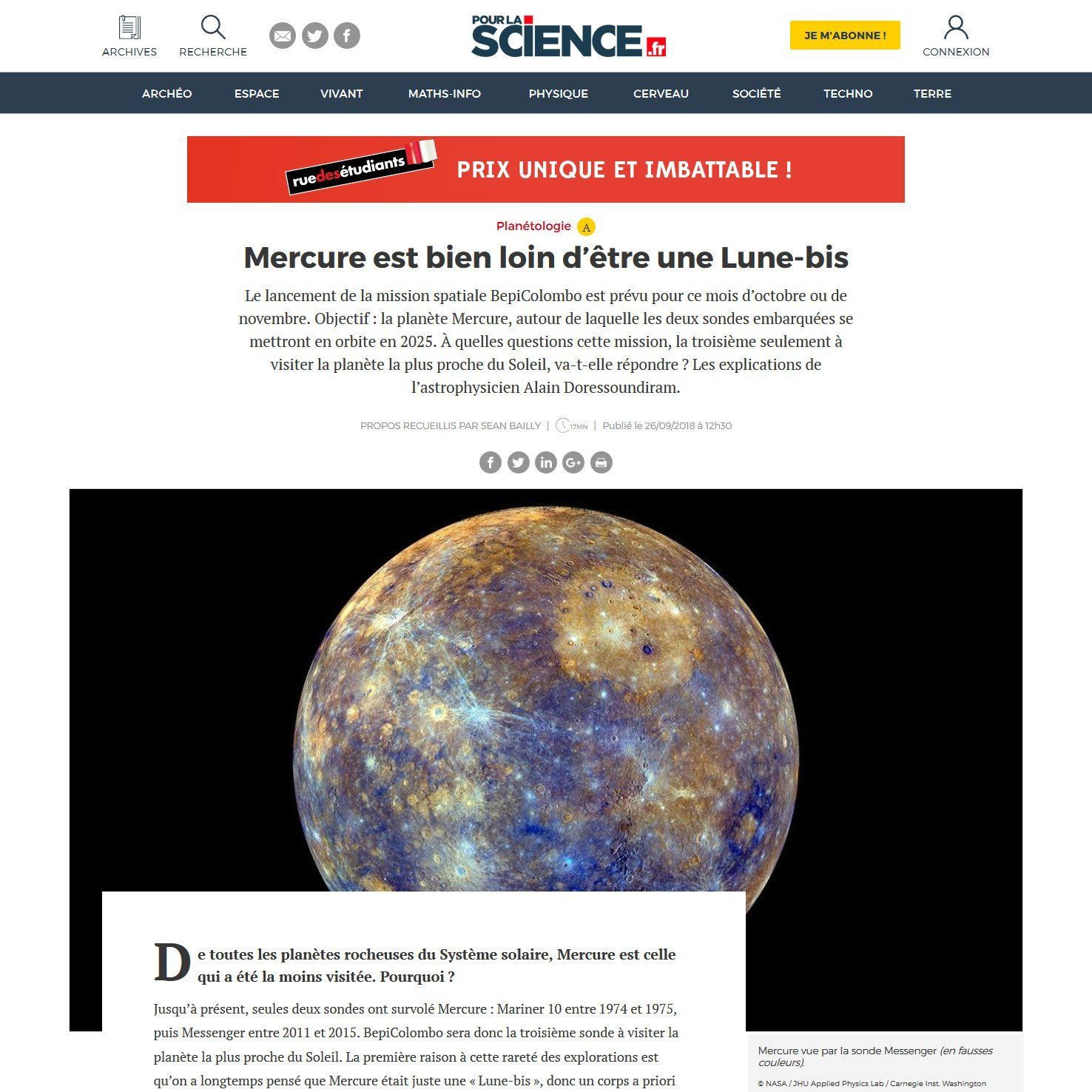 Que sait-on de Mercure, la planète la plus proche du Soleil ? Pourquoi a-t-on aussi peu exploré cette planète ? Que va nous permettre de comprendre la mission BepiColombo ? Avec Alain Doressoundiram, astrophysicien au LESIA de l’Observatoire de Paris - PSL et François Leblanc, astrophysicien, directeur de recherche au LATMOS. Ils ont tous les deux travaillé sur cette mission BepiColombo sur différents instruments embarqués. Reportage Rencontre avec Michel Moncuquet, astrophysicien et ingénieur de recherche au sein du LESIA de l’Observatoire de Paris - PSL. Il a piloté la fabrication du spectromètre SORBET embarqué dans la mission BepiColombo.