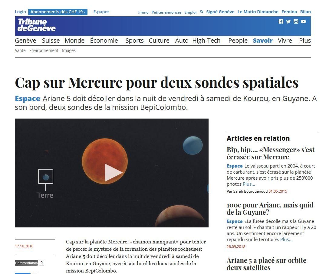 Le 19 octobre débutera la mission BepiColombo. Au sommet de la fusée qui sera lancée depuis le centre spatial, une sonde destinée à explorer la planète Mercure. L’un des concepteurs des instruments de cette mission Alain Doressoundiram est allé au collège Agarande à Kourou, où il fut élève.